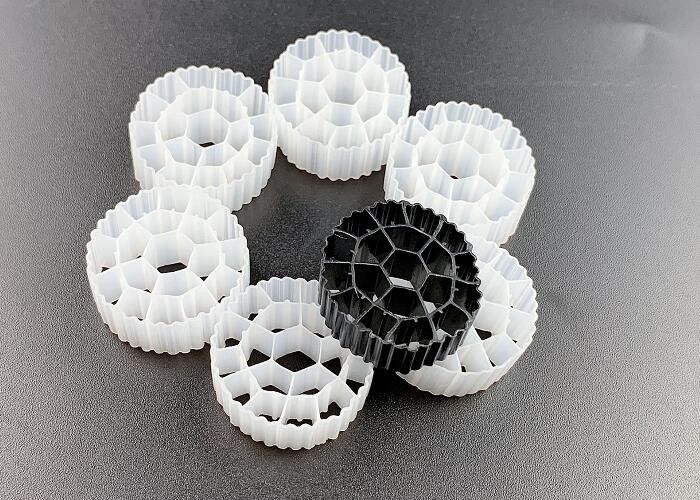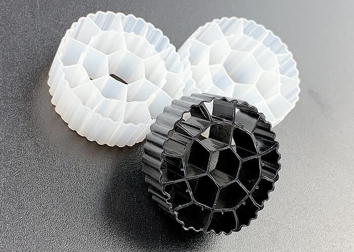 ·Typ: PE05 ·Spezifikationen: 25 x 10 mm ·Dichte: 0,94-0,97 g/cm³ ·Neugeborenes HDPE Material ·Dosierungsquote: 30% ·Verpackungsnummer: > 118000 Stück/m³ ·Aktivfläche mehr als 500m2/m³ ·Lebensdauer: >15 Jahre ·Nitrationswirksamkeit: 500 g NH4-N/m³.d